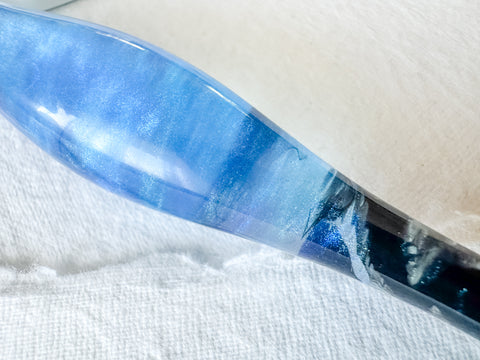 • Swirls of black and shimmering blue with transparent areas for extra interest